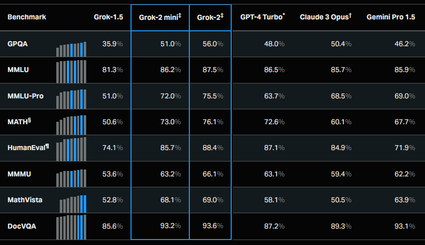 Lalu apa itu Grok-2 Beta dan Grok-2 Mini?, dapat dikatakan Grok-2 mini dan Grok-2 ini merupakan AI Chatbot dengan kemampuan yang jauh lebih baik daripada Grok-1.5 yang telah ada, dimana keduanya sebanding dengan GPT-4o dan Claude 3.5 Sonnet.